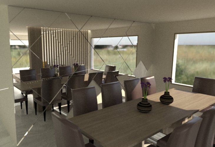 In medium to large dining rooms, experiment with mirror sizes. Cover an entire wall or choose a large mirror with a defined frame.