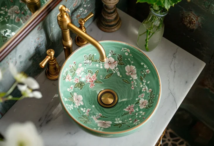 One of the standout trends is artistically designed sinks. These are handmade sinks adorned with intricate paintings or decorations, turning each one into a unique work of art. Instead of a plain white sink, you can find sinks with rounded lines, bold colors, and impressive geometric patterns.