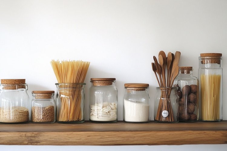 Empty glass jars can serve as decorative storage containers in the kitchen or bathroom. Just wash them well, remove the original label, and fill them with items like pasta, spices, cotton balls, or wooden sticks. These jars help organize and add an aesthetic, tidy look.