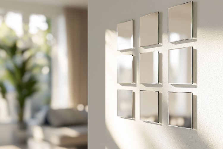 Small mirrors can easily upgrade the look of a room. Hanging several small mirrors in interesting shapes on the wall can add depth and make the space feel larger without spending much money. You can buy small, lightweight mirrors at discount stores and stick them on using strong double-sided tape.
