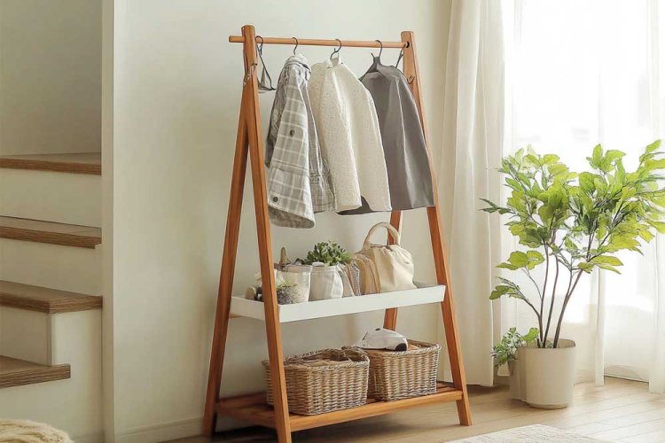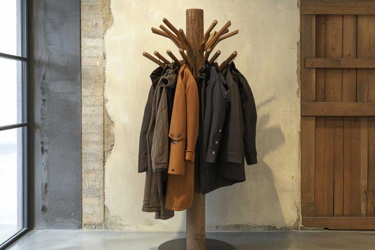 A foldable wall rack is an excellent option for those who want a solution that doesn’t take up space when not in use. You can easily open it in winter to hang coats and simply fold it away in summer. Additionally, some models feature beautiful designs that integrate well with your home decor, making it a decorative element as well.