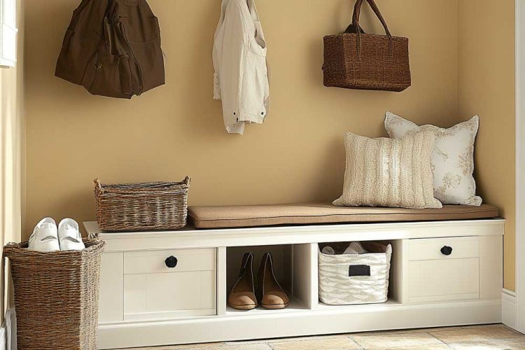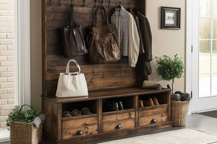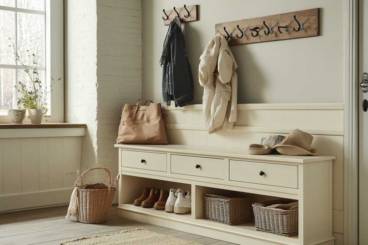 A storage bench with hooks is a dual-purpose solution that offers seating space as well as storage for coats, shoes, and other items. This is especially suitable for entryways, where you can place bags or other daily items. Choose a bench with ample storage space to make the most of your area.