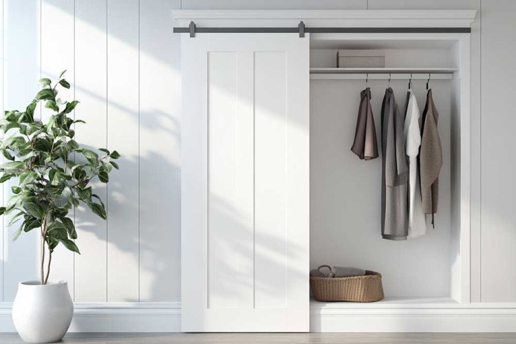 If you're willing to invest, you can ask an interior designer to plan a hidden niche with a sliding door, providing a permanent solution for hanging coats in an orderly fashion.