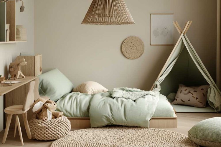 - For variety, small touches of pastel colors, like dusty pink or light blue, can be added in small accessories like toys or books.