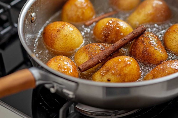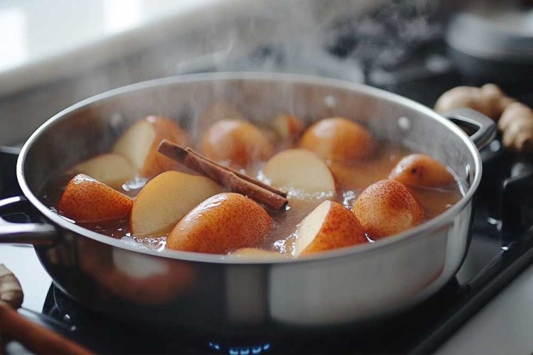 - After boiling, reduce the heat and simmer on low for about 20 to 30 minutes until the water absorbs the flavor and nutrients from the pears.