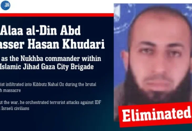 The IDF says that it can now confirm that one of those strikes killed Alaa Khudari, who served as the chief of Islamic Jihad’s elite forces in Gaza City. Military officials describe Khudar as a senior commander responsible for directing assaults on IDF units throughout the war.