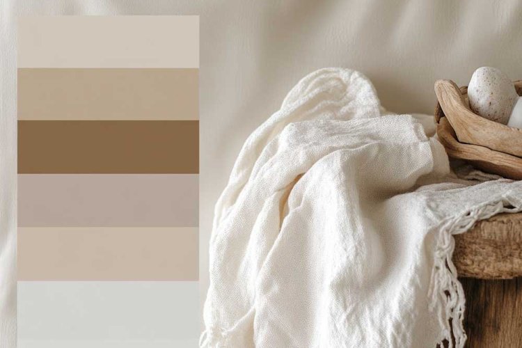 Decorate rooms with shades of sand, brown, and olive green, focusing on furniture with a raw and simple look.
